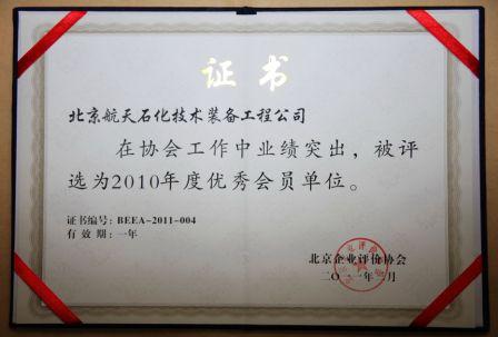 航天石化榮獲2010年度北京企業(yè)評價協(xié)會優(yōu)秀會員